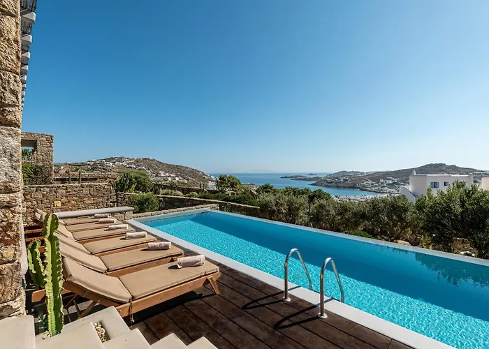Com uma localização 4.8 km da Praia de Agios Stefano, a Dreamlike Villas Mykonos Ornos dispõe de terraço com vistas para o mar. Convidando os hóspedes a relaxar na piscina no último andar, esta vila familiar está situada na área premium de Ornos.